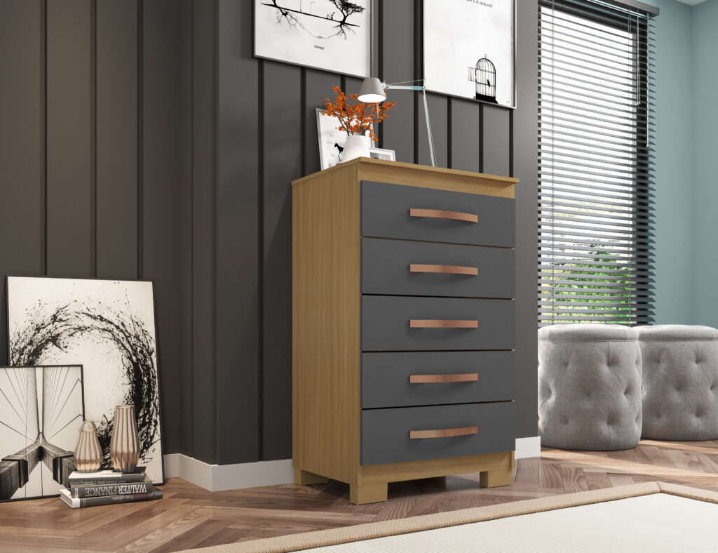 COMODA INCORPLAC MODENA 5G CARVALHO/GRAFITE