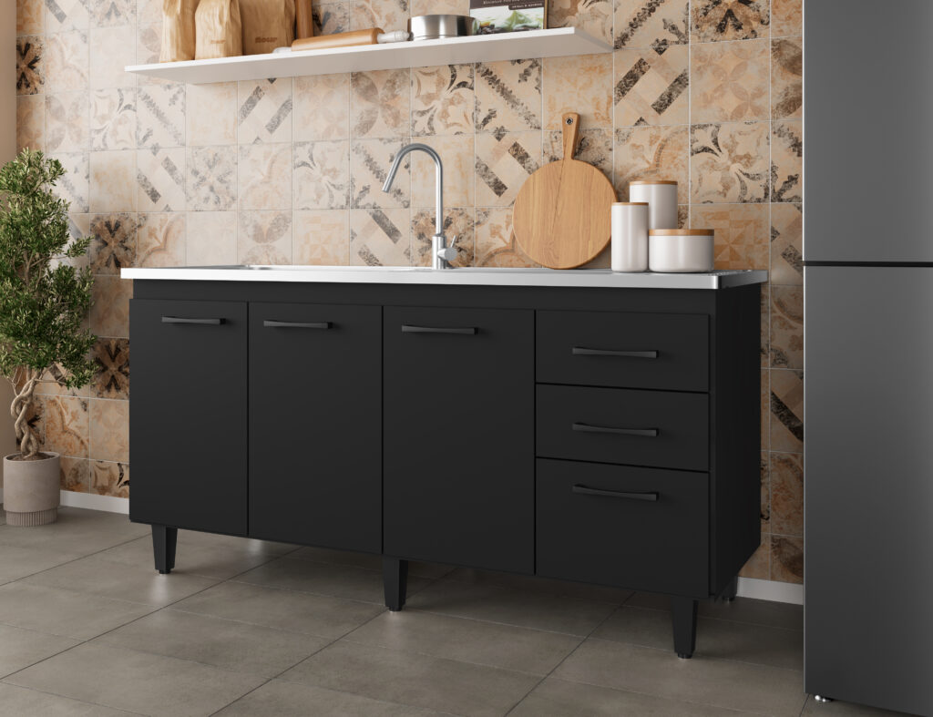 BALCAO RUD RACK MAISA 1,58 P/PIA PRETO