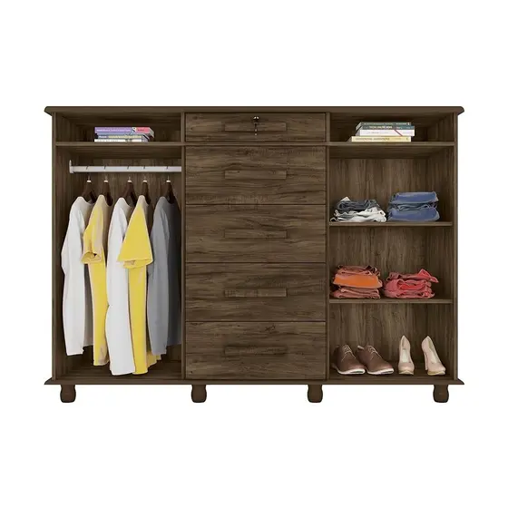 Produto em MDF/MDP Pintura em UV 5 gavetas com 1 gaveta chave 2 Portas Altura: 122cm Largura: 170cm Profundidade: 54cm