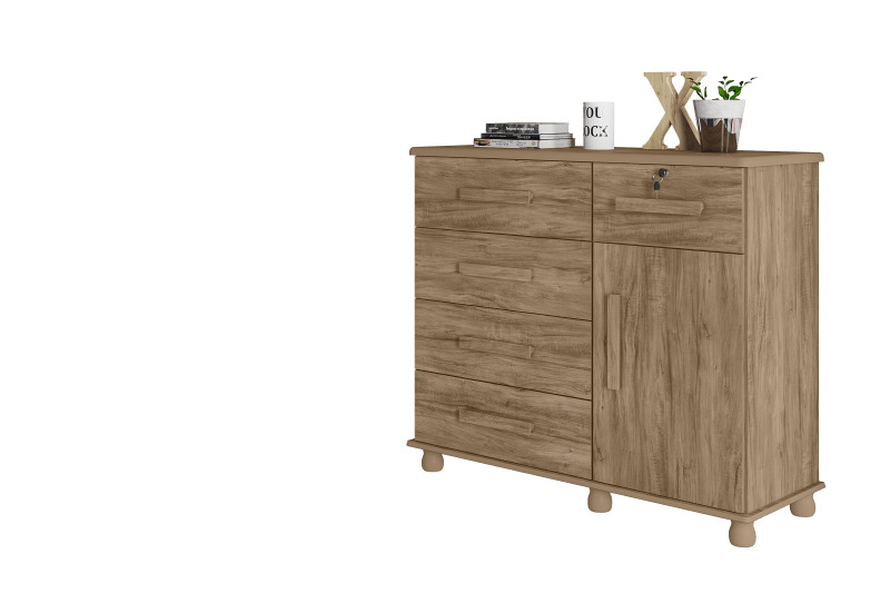 Produto em MDF/MDP Pintura em UV 5 gavetas 1 com chave 1 Porta Altura: 101cm Largura: 118cm Profundidade: 45cm
