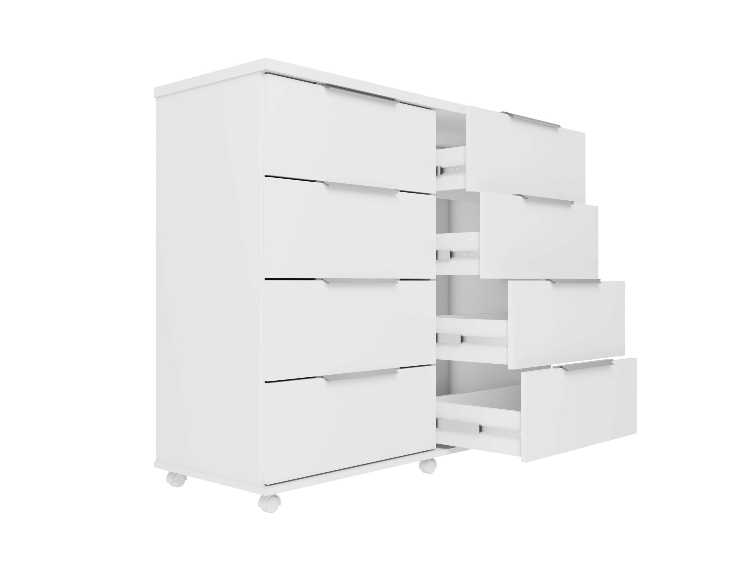 . Produto 100% mdf . 08 Gavetas com corrediças telescópicas . Tampo superior de 25 mm . 05 rodízios . Puxadores modernos Altura: 101cm Largura: 121cm Profundidade: 45cm