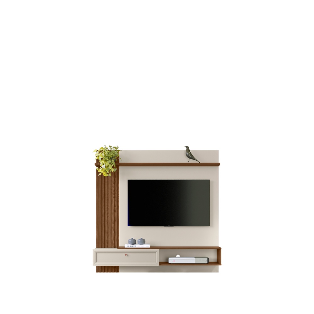 Painel Com Detalhe Ripado Porta Basculante Estilo Americano Espaço para Eletrônicos Ideal para Tv de 55″ Altura: 132cm Largura: 133cm Profundidade: 31cm