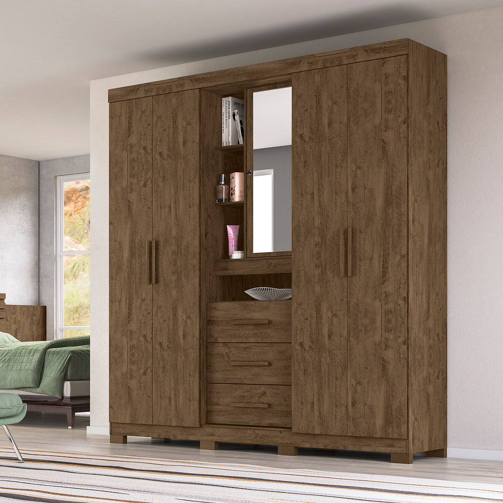 Roupeiro Moval Eldorado 4p 3v C/esp. Cast.wood