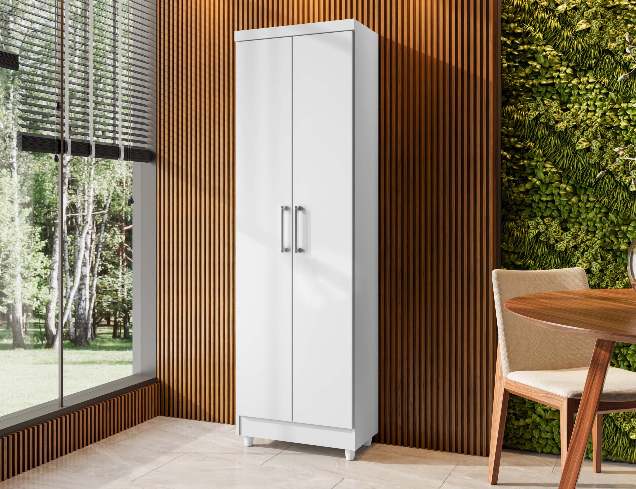 . Produto em MDF E MDP . 02 portas . 04 prateleiras . 04 pés em PVC . Produto de 12mm e 9mm . 02 Puxadores modernos Altura: 188cm Largura: 50cm Profundidade: 31,5cm